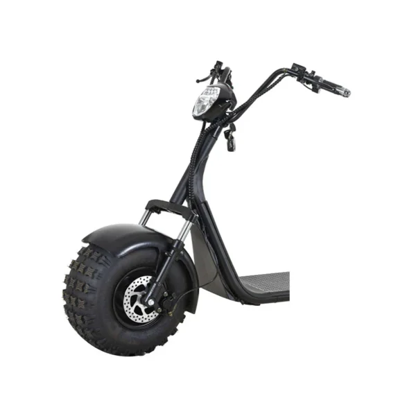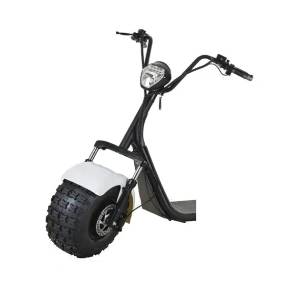 The citycoco scooter, people call fat tire electric scooter as well, it is a big wheel scooter that is powered by a 1500w/2000w/3000w motor, 60V 12Ah/20Ah/40Ah/60Ah battery. It’s equipped with front and rear suspension, mechanical brake discs and removable battery, and are more comfortable, ergonomic and eye-catching thanks to their design that emulates that of a motorcycle.
