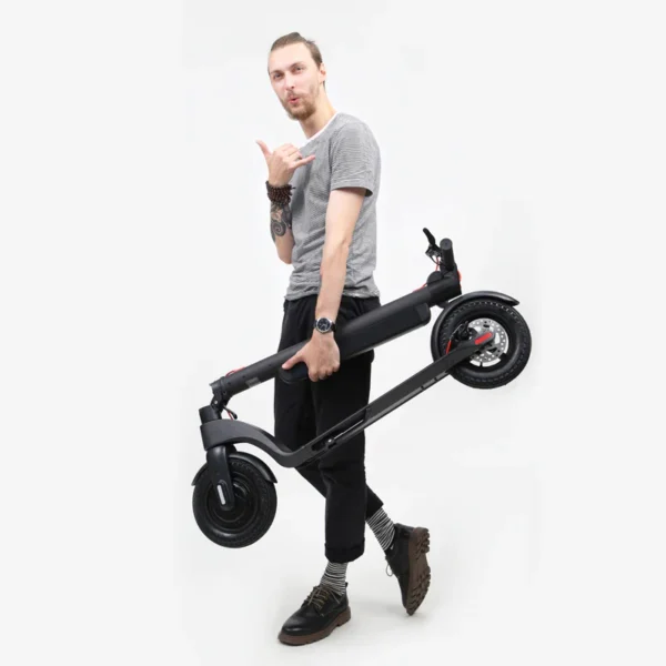The lever-activated folding stem makes the scooter ready to carry in seconds. Its low weight of 29.7 lbs and compact measurements make the Off road electric scooter a cost-effective way to solve the “last mile” problem with a public transport system.