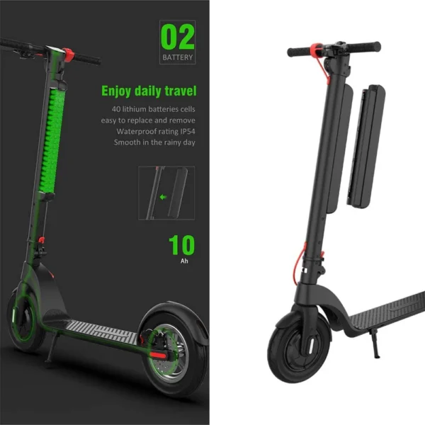 Swappable Battery: The battery pack can be removed from the stem quickly and easily, allowing you to charge it separately at home. First Swappable battery scooter that can swap battery in 3 seconds, the swap battery is put in the bar instead of the bottom that make it performs way more better under rainy days.