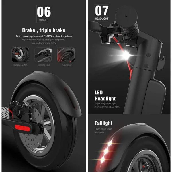The LED front headlight greatly increases your safety and peace of mind while riding a scooter in the dark.